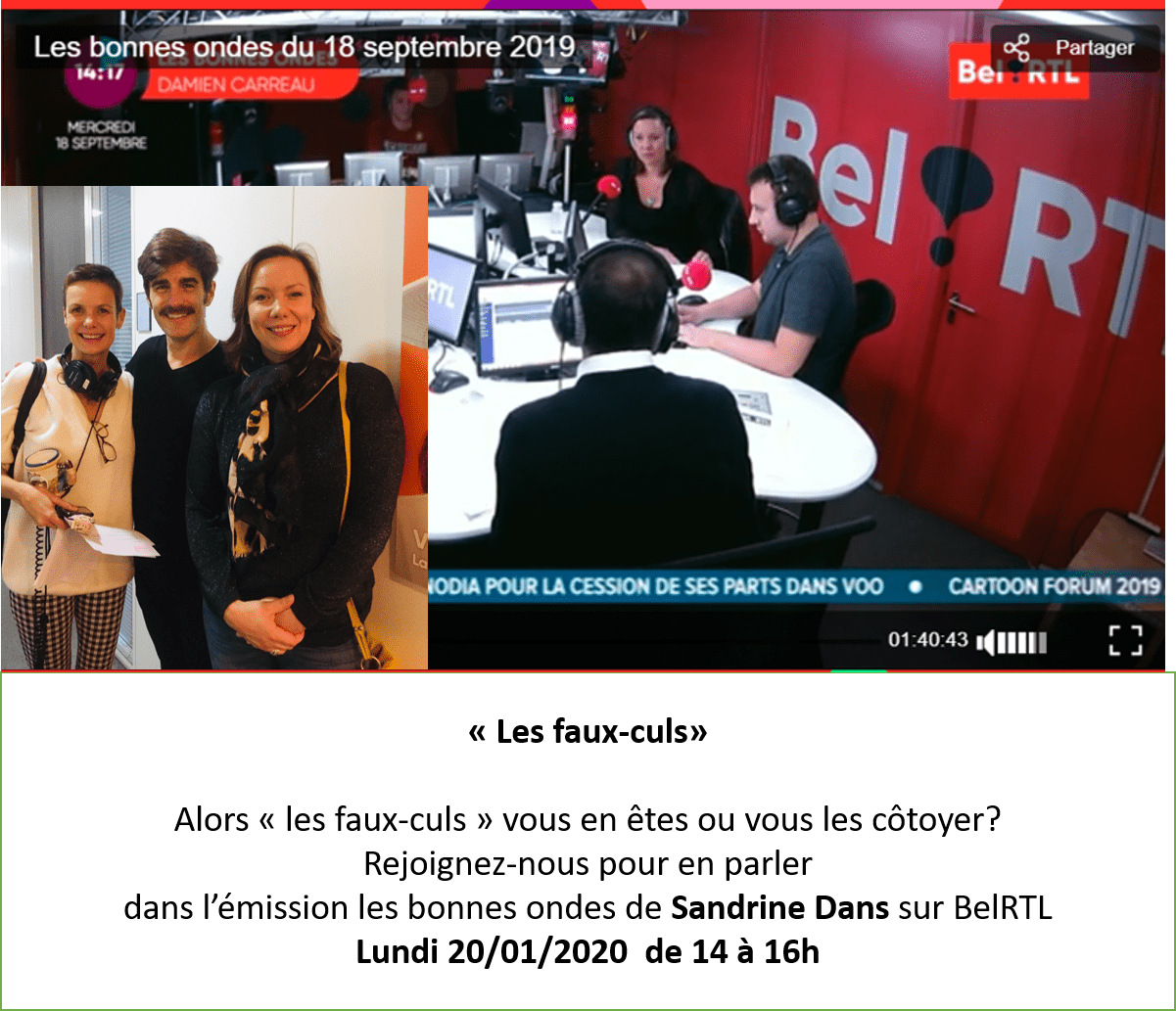 J’aurai le grand plaisir de vous retrouver le lundi 20/01 de 14 à 16h dans les bonnes ondes de Sandrine Dans sur Bel RTL sur le thème des « faux-culs » alors vous en êtes ou pas?